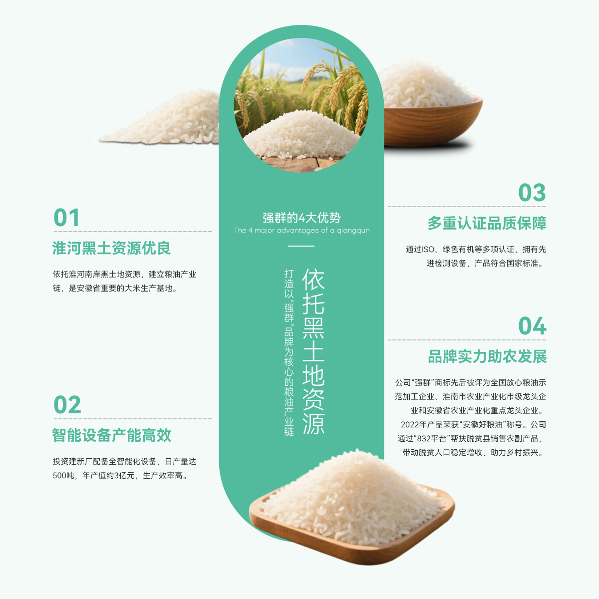 壽縣強群糧油貿(mào)易有限公司成立于2011年,座落在淮南市壽縣澗溝鎮(zhèn),是一家集種植、加工、收儲、銷售于一體、以生產(chǎn)中、高檔質(zhì)優(yōu)、特色類大米為主的綜合性企業(yè)。公司依托準(zhǔn)河南岸的黑土地資源,打造以“強群”品牌為核心的糧油產(chǎn)業(yè)鏈,是安徽省重要的大米生產(chǎn)基地。   為響應(yīng)市場增長需求,公司2021年啟動二期擴產(chǎn)工程,其中新生產(chǎn)廠區(qū)建設(shè)投入資金近億元,建設(shè)現(xiàn)代化新生產(chǎn)線,總占地面積約4000...